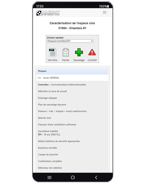 - Générer des permis d'espace clos sur votre téléphone directement depuis le lieu de travail.