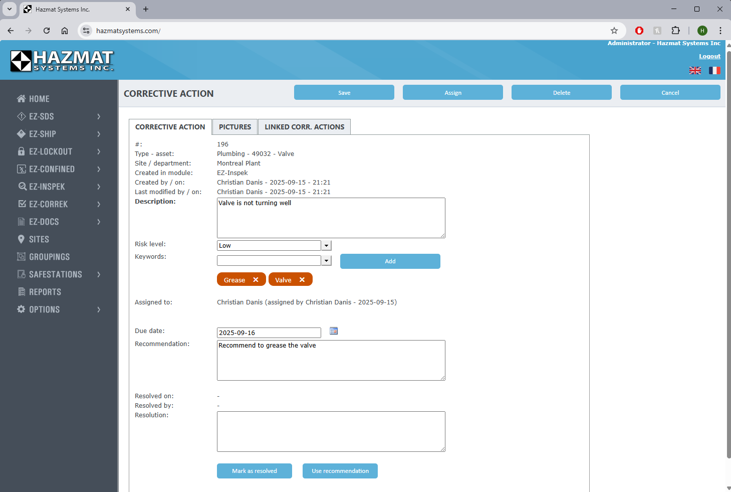 Corrective actions: Manage and assign corrective actions created by your team.