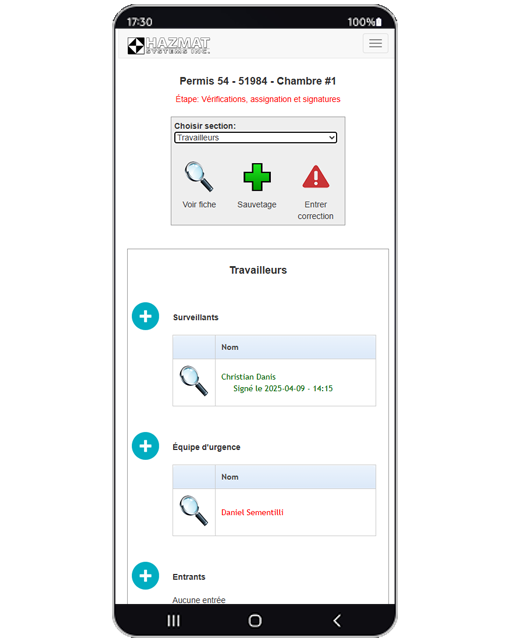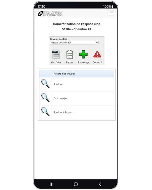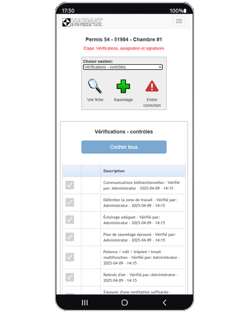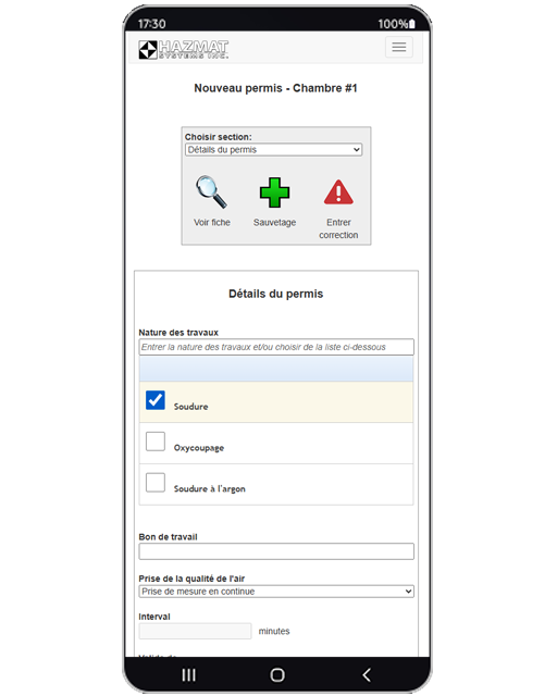 - Générer des permis d'espace clos sur votre téléphone directement depuis le lieu de travail.