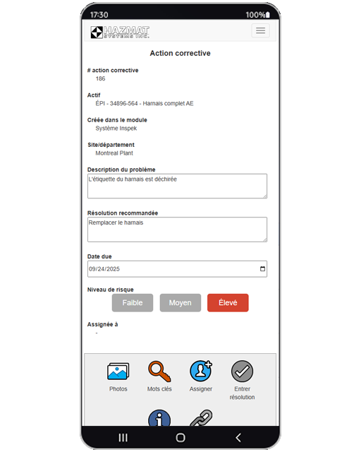 Actions correctives: créez, assignez et résolvez des actions correctives directement sur votre téléphone.