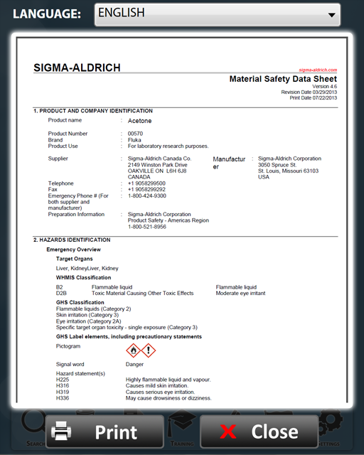 View the SDS onscreen, change its language easily, even print the SDS... it simply doesn't get any easier!
