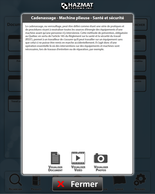 Voyez des documents, incluant des procédures de santé et sécurité, directement sur