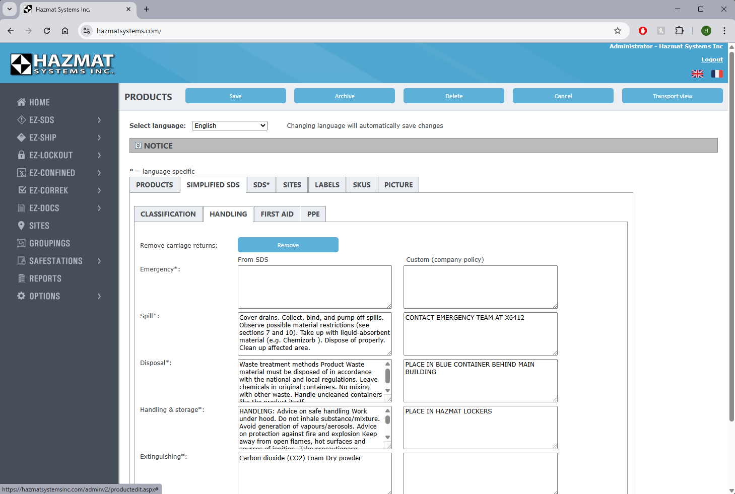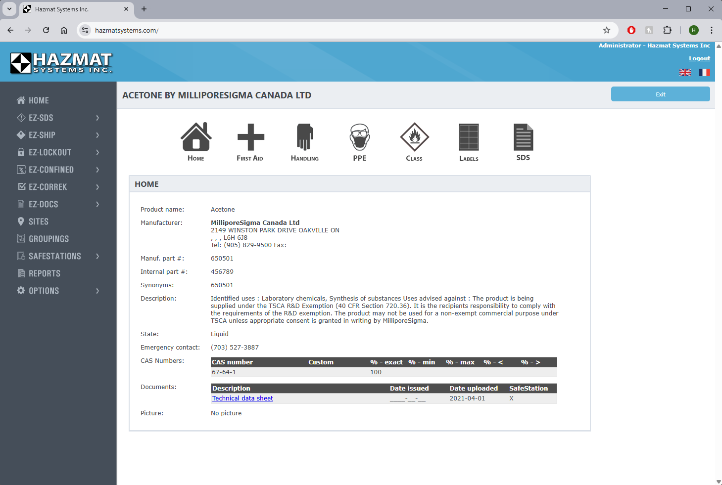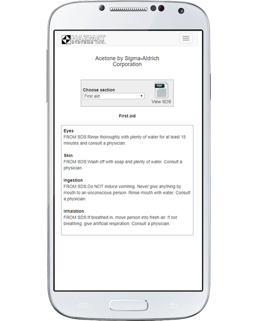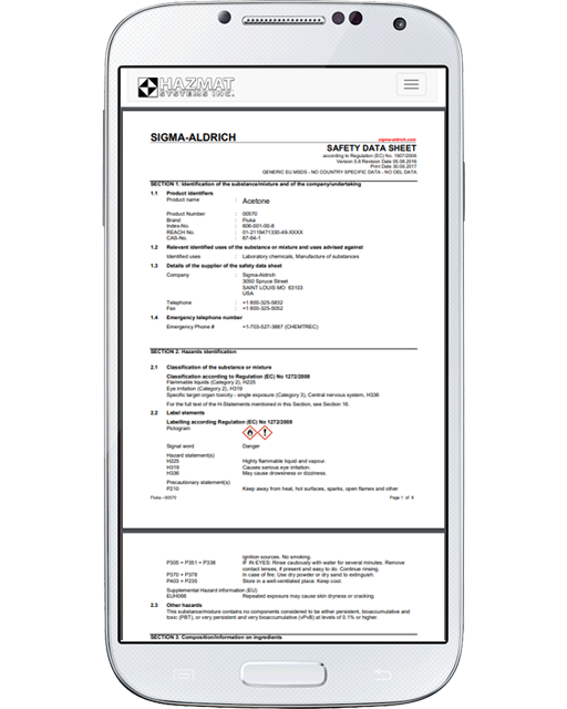 Access important information such as first aid, handling, classification and even custom company policies quickly and easily